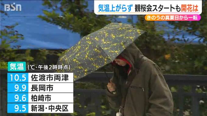 27日の夏のような暑さから一転、28日は一気に気温が下がりました。新潟県内の桜の開花はまだのようです。