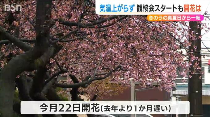 こうした中、新潟市 中央区にある万代長嶺小学校では早咲きのサクラが咲いていました。去年よりもおよそ1か月遅く今月22日に開花したそうです。