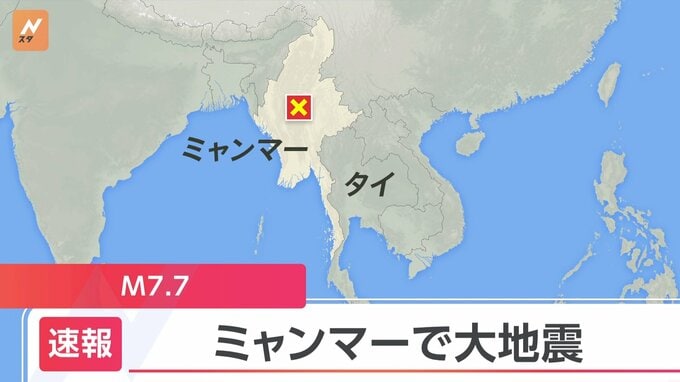 日本時間のきょう午後3時20分ごろ、ミャンマーでマグニチュード7.7の大きな地震がありました。USGS=アメリカ地質調査所によりますと、ミャンマー中部のマンダレー近郊で日本時間の午後3時20分ごろ、マグニチュード7…