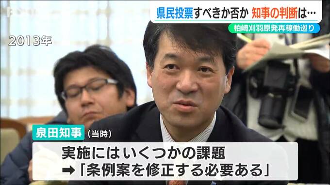原発再稼働を巡る県民投票の条例案は12年前にも県議会で審議されました。この際、当時の泉田知事は県民投票の実施にはいくつかの課題があり「条例案を修正する必要がある」という内容の意見書を付けました。