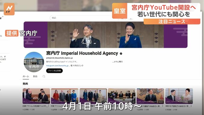 宮内庁は、来月1日午前10時から天皇皇后両陛下の活動を紹介するため、公式YouTubeを開設すると発表しました。これまで公式インスタグラムで投稿してきた両陛下の活動や、皇居の自然の動画を公式YouTubeでも発信し…