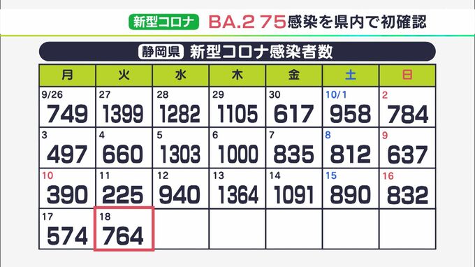 10月18日、静岡県内では、新たに764人が新型コロナウイルスに感染したことが分かりました。