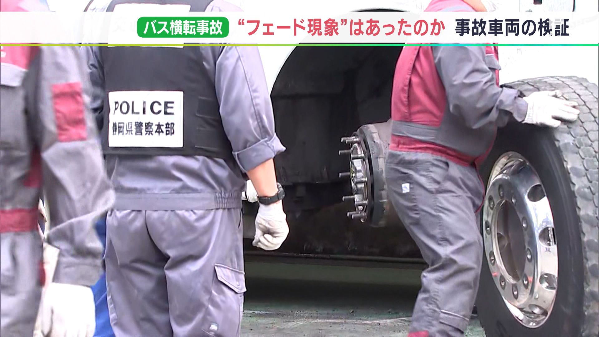 18日午前11時から始まった検証は、静岡県御殿場市のバスを製造したメーカーの施設で行われ、警察や技術者のほか、国交省の担当者者バス会社の社長らも立ち会いました。