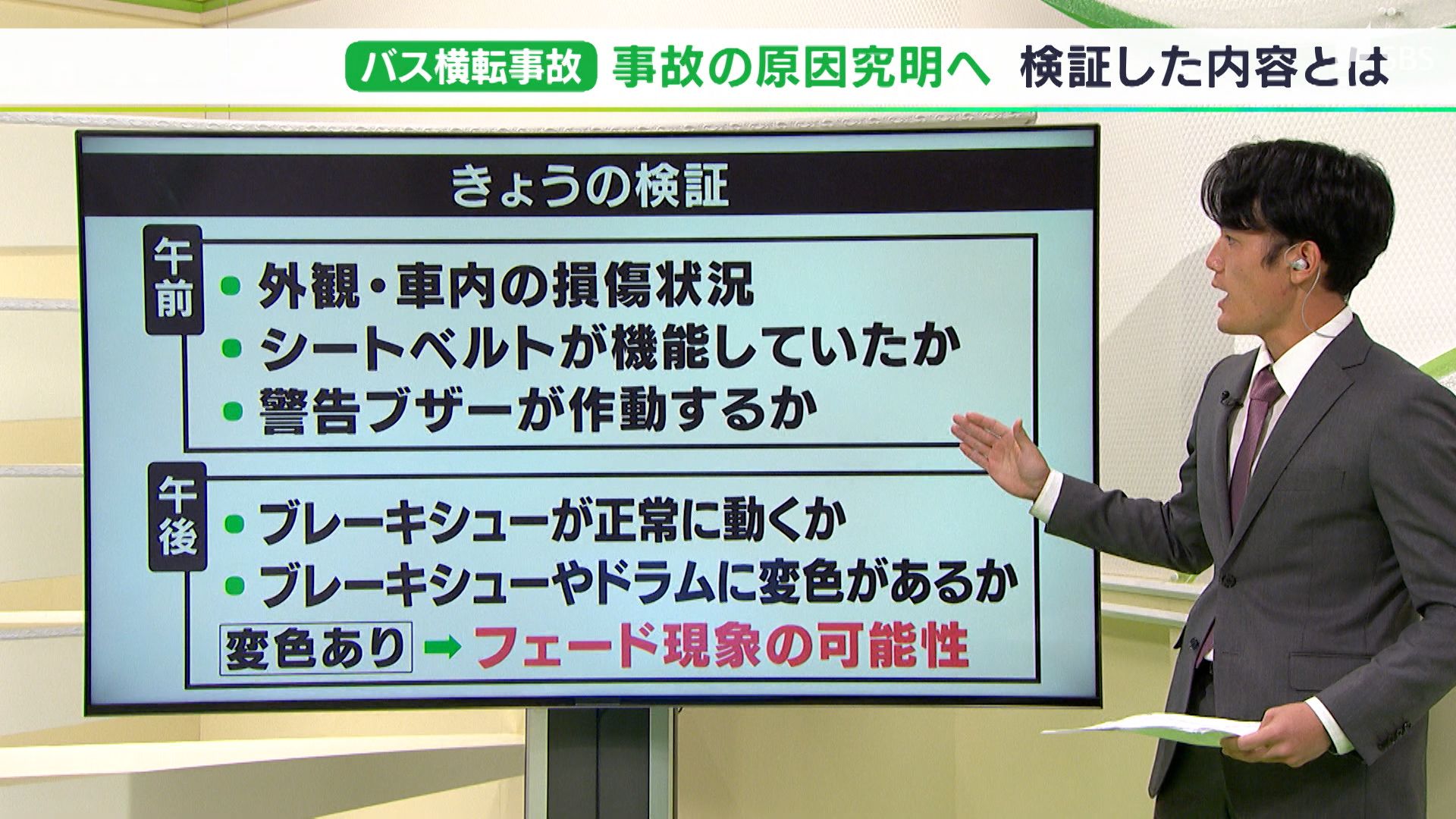摩擦で色が変わっていればブレーキの使い過ぎによって発生する「フェード現象」の可能性が高いということです。また、ブレーキに空気を送り込むシステムに異常があった場合も機能しなくなるため、その確認もしました。18日の検証で事故の原因究明に大きく近づくとみられます。