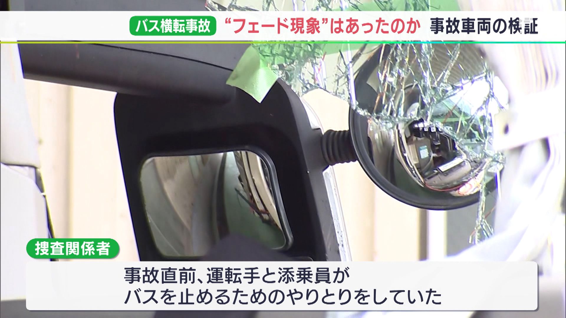 この事故で、逮捕されたバスの運転手の男(26)は「ブレーキが利かなくなった」と話していて、ブレーキに空気を送りこむシステムに異常がなかったかやタイヤを取り外して、ドラムなどに摩擦による変色があったかなど、フットブレーキの使い過ぎによって発生する「フェード現象」が実際に起こっていたかなどを調べたということです。
