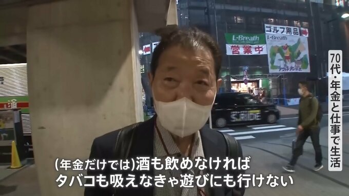 「(年金は)月6万円くらい。少ないなんてもんじゃない。(年金だけでは)酒も飲めなければタバコも吸えなきゃ遊びにも行けない」