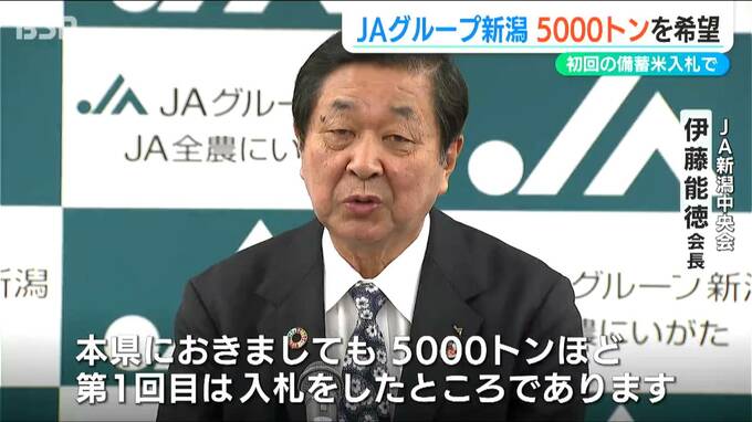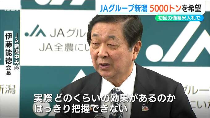 【JA新潟中央会 伊藤能徳 会長】「本県におきましても5000トンほどですから、第1回目は入札をしたところであります」