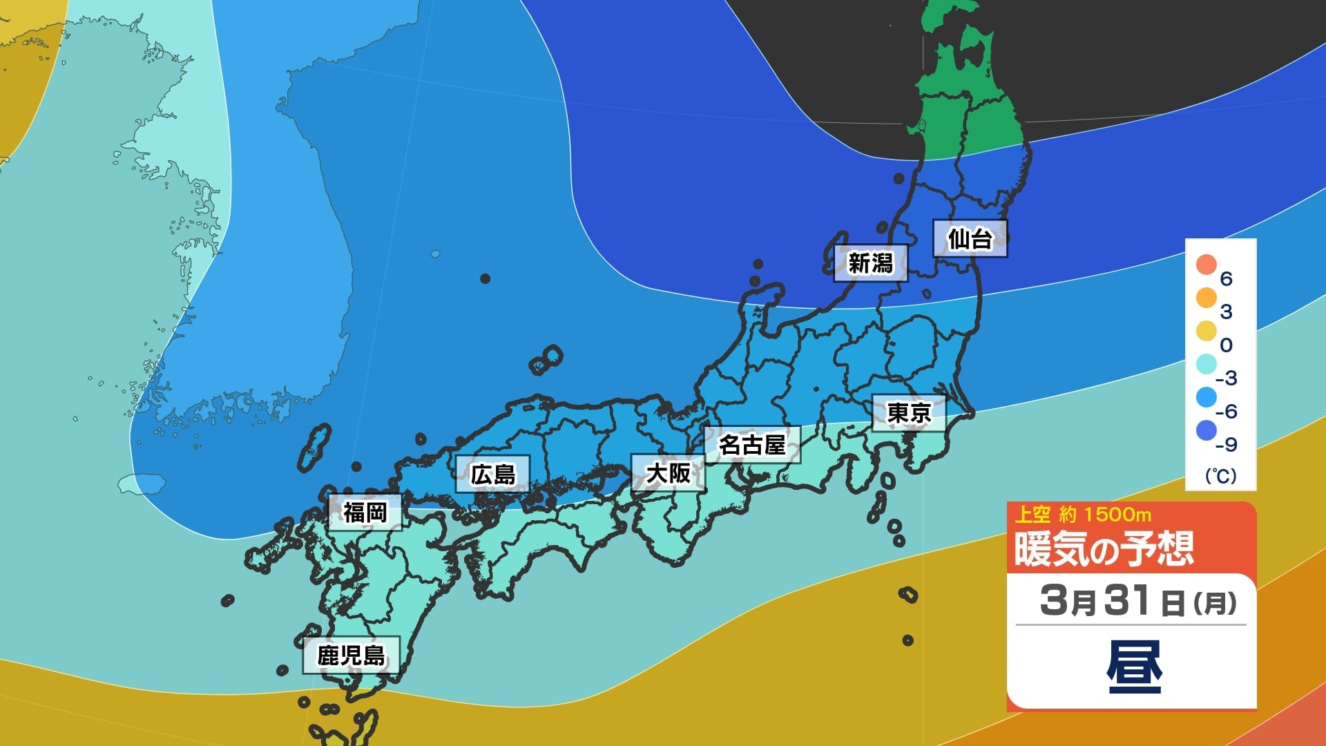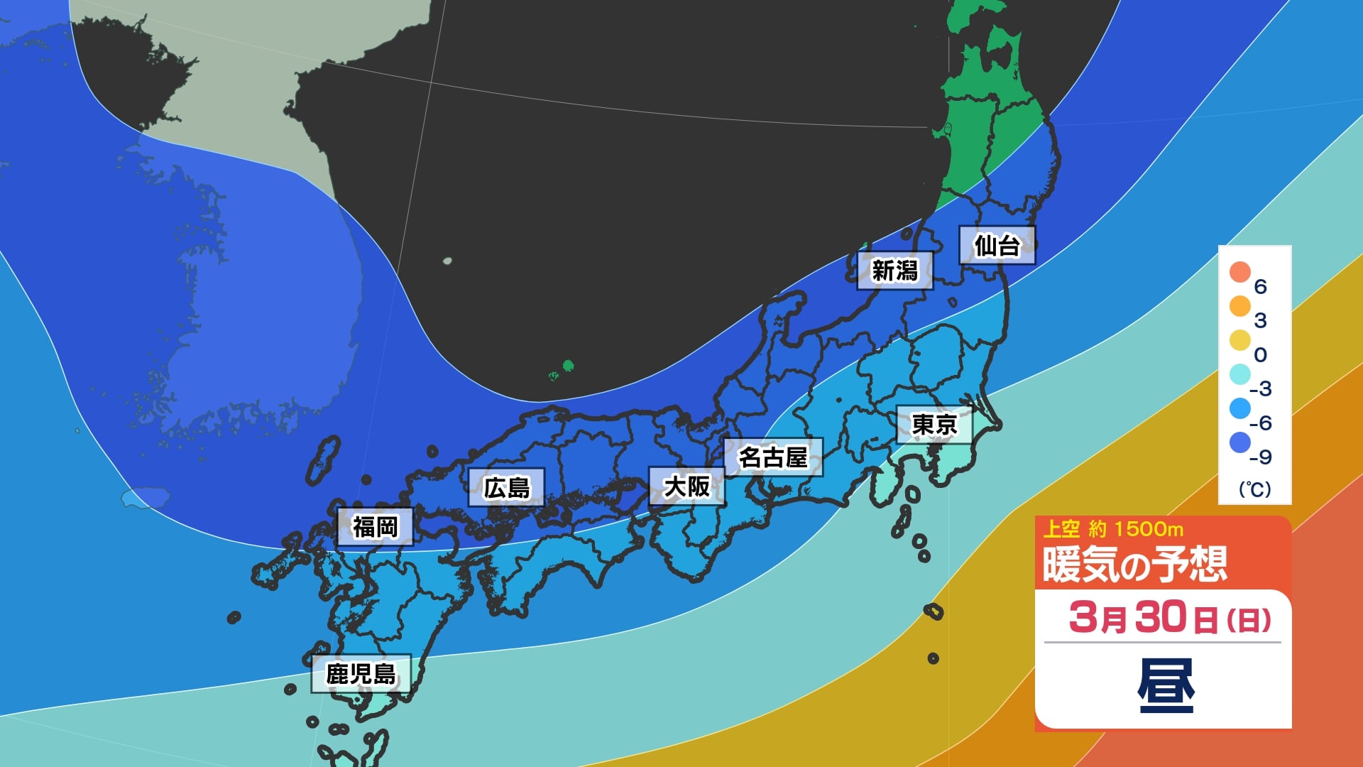 4月1日(火)~2日(水)暖気と寒気のシミュレーション / 暖かい空気に覆われる!