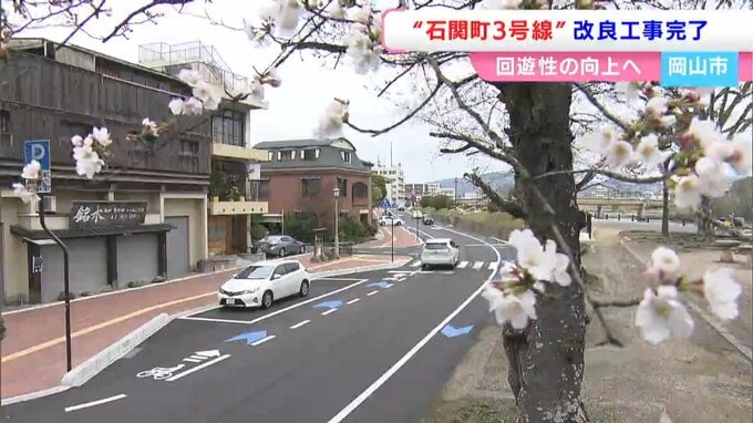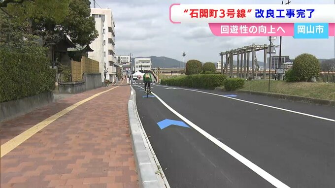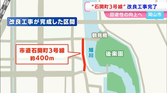 後楽園や岡山城にほど近い、市道の改良工事が完成しました。工事は10年以上かけて行われたもので、防災上の安全性や観光地周辺の回遊性の向上などが期待されます。