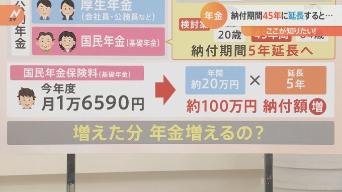 政府は【年金制度】の見直しに向けて、「国民年金」の保険料を納める期間を現在の40年から45年に延長することを議論していく考えを示しました。負担が増える中、私たちは将来どれくらいの年金を貰うことができるのか?気になる「年金のギモン」を徹底調査!