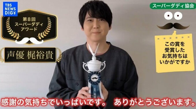【梶裕貴】「第8回 スーパーダディアワード」受賞 “娘がまだしゃべれなかった時期はもう戻ってこなくて尊い” 仕事と育児・家事を両立するライフスタイルのパパ有名人に贈られる賞
