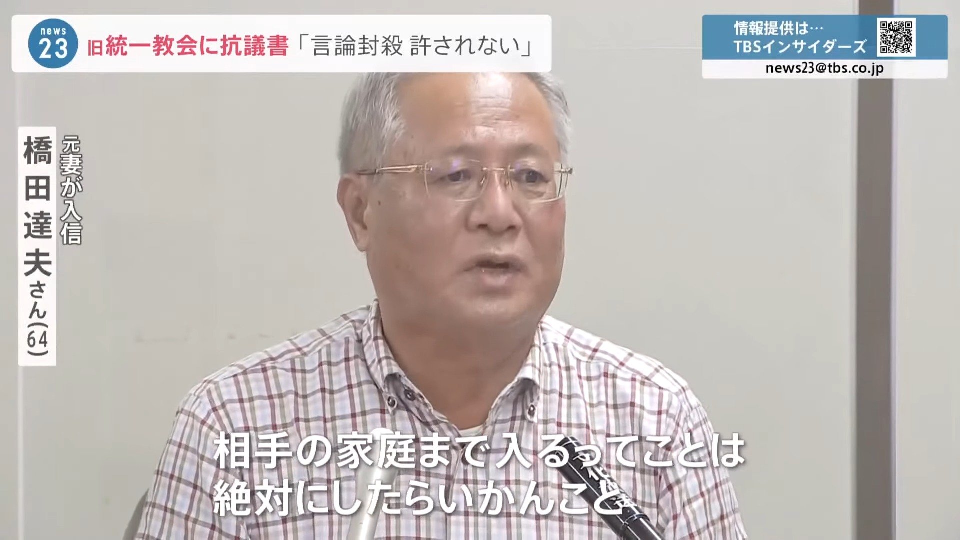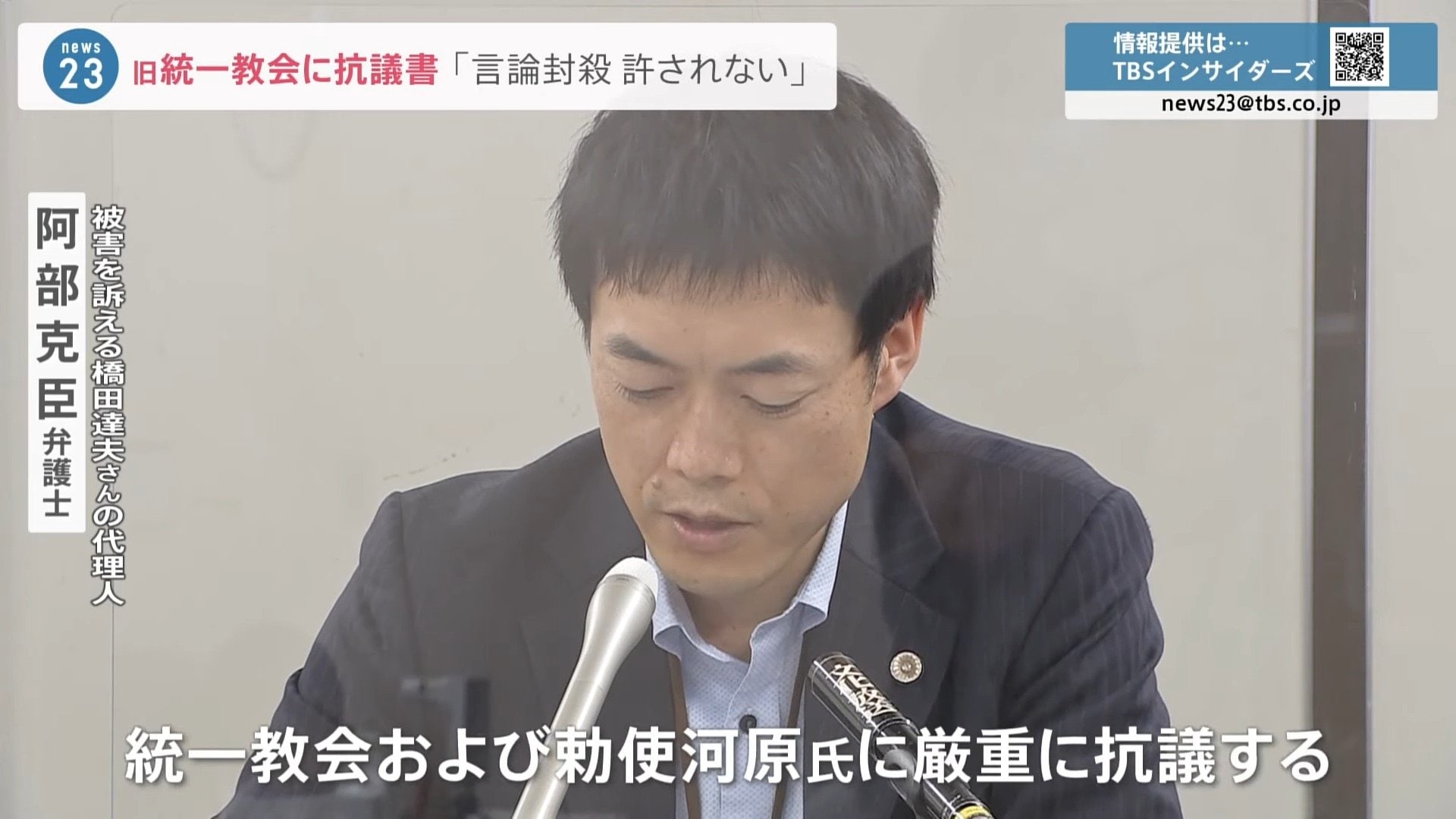 「言論を封殺しようとするものであり、社会的に許されるものではない。統一教会および勅使河原氏に厳重に抗議する」