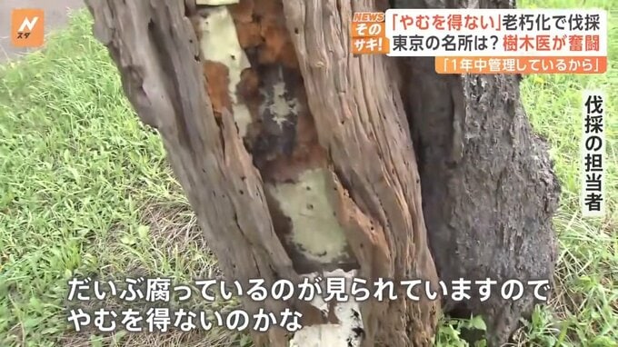 「切るというのは寂しいですが、切ってみるとですね、だいぶ腐っているのが見られていますので、やむを得ないのかな」