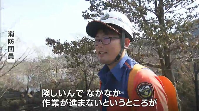 「落ち葉がよく燃えるんでやっぱり中に来て初めてわかる。険しいんでなかなか作業が進まないというところが」