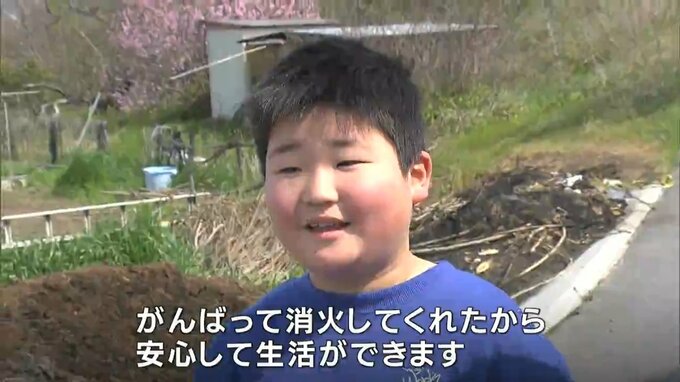 (現地の小学3年生)「がんばって消火してくれたから、安心して生活ができます。ありがとうございました」