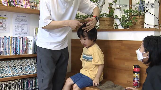 5歳のげんきくん、その後も何度か赤松さんの店を訪れますが、散髪はできません。ただ店に入ることは、もう慣れたようです。