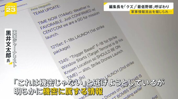 トランプ氏や、チャットに加わっていた関係者らは「機密情報はやりとりしていない」と主張していますが、軍事ジャーナリストの黒井氏は。