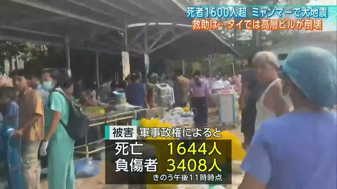 ミャンマーの軍事政権は、29日午後11時時点で1644人が死亡したと発表。負傷者も3400人を超えていて、マンダレーに住む日本人2人がけがをしたとの情報もあります。