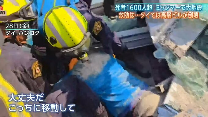 また、ミャンマーの首都・ネピドーでは、倒壊した建物の隙間に挟まれた母親と子どもの救助活動が行われていました。
