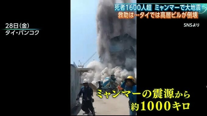 建設中の高層ビルが一瞬で倒壊したのは、震源から約1000キロも離れたタイの首都・バンコクです。がれきの下敷きになった人も...