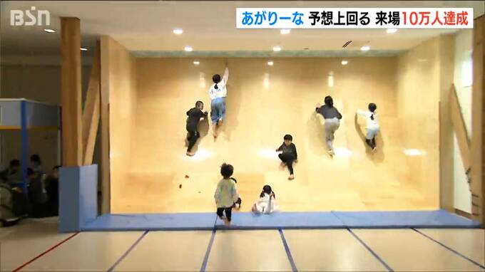 新潟県 阿賀町の全天候型あそびの広場「あがりーな」が28日、来場者10万人を達成しました。当初の予想を大幅に上回りオープン300日での10万人です。オープンからちょうど300日、10万人目となった胎内市の家族には…