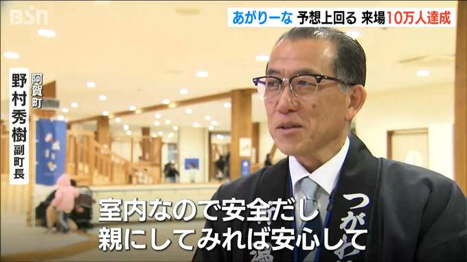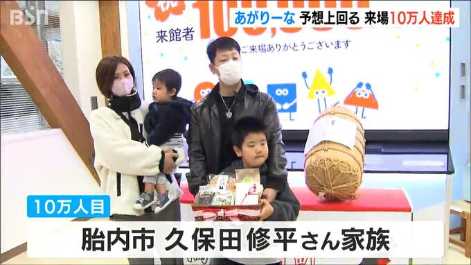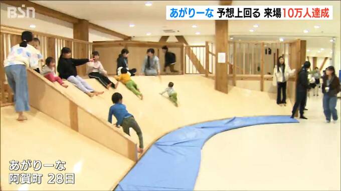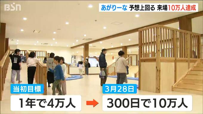 新潟県 阿賀町の全天候型あそびの広場「あがりーな」が28日、来場者10万人を達成しました。当初の予想を大幅に上回りオープン300日での10万人です。