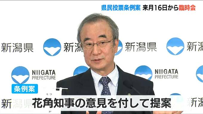 東京電力・柏崎刈羽原発の再稼働をめぐっては、県民投票の実施を求める市民団体が14万3000筆あまりの署名とともに、条例案を花角知事宛てに提出しています。