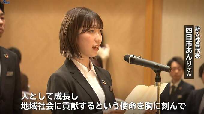 式では新入社員24人の名前が読み上げられ、代表して四日市あんりさんが決意を述べました。
