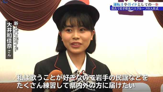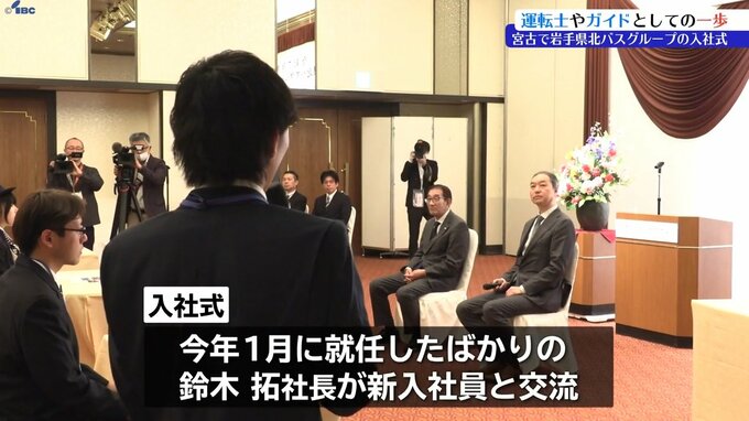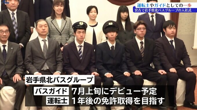 新年度の始まりを前に、こちらは早くも入社式です。宮古市で31日、岩手県北バスグループの入社式が行われ、新入社員が運転士やガイドとしての一歩を踏み出しました。