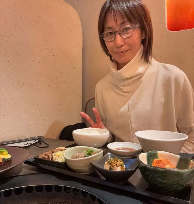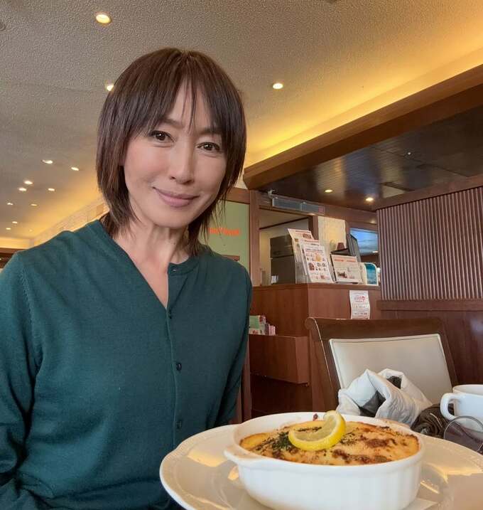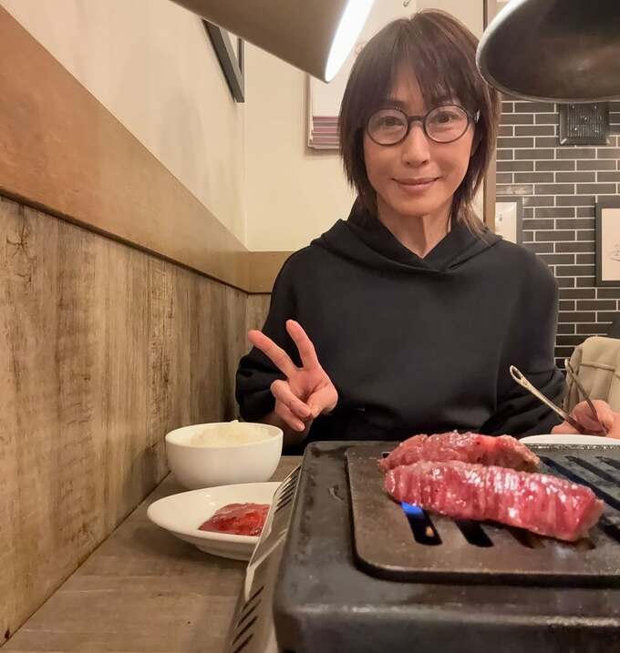 高島礼子さんは、「ひとり飯 シリーズ」と題し、ラーメンや焼肉などの料理を前にしたオフショットを披露しました。