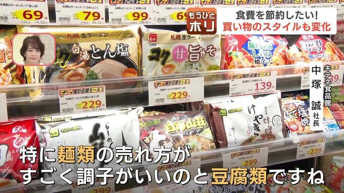「特に麺類の売れ方がすごく調子がいいのと、豆腐類ですね。(豆腐は)料理のかさ増しにもなりますし、麺類で1食分ごはんではなく、麺類に代えることで米の消費を少なくする」