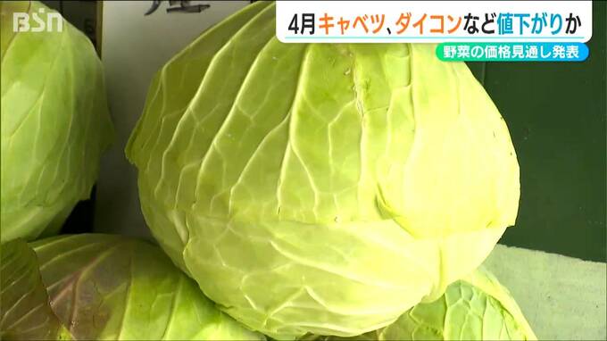 北陸農政局が31日に発表した野菜の入荷量と卸売価格の見通しによりますと、キャベツは入荷量が増えることから4月は価格がさらに下がる見込みです。