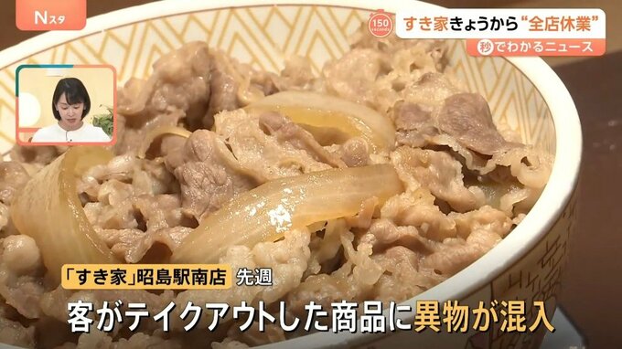 すき家は先週、東京・昭島市内の店舗で客がテイクアウトした商品に異物が混入していたことを明らかにしました。