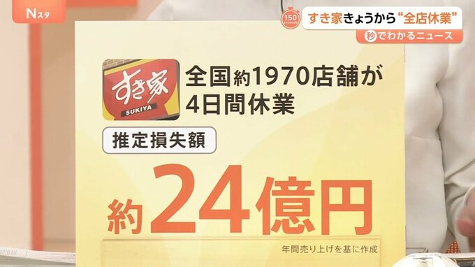 国内のすき家・約1970店舗が4日間、順次休業をしていくということです。
