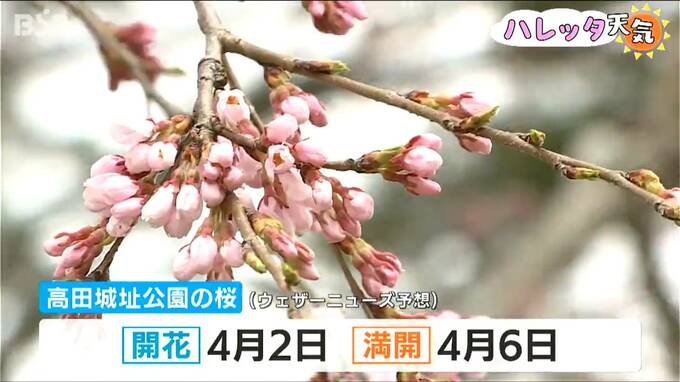 ウェザーニューズによりますと、高田城址公園の桜は4月2日に開花すると予想されています。