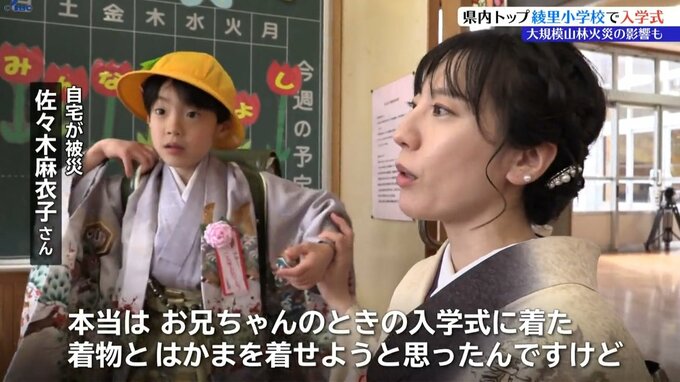 「本当はお兄ちゃんの時の入学式に着た着物とはかまを着ようと思ったんですけども、ちょっと今回の災害で燃えてしまったので今回はレンタルという形で」