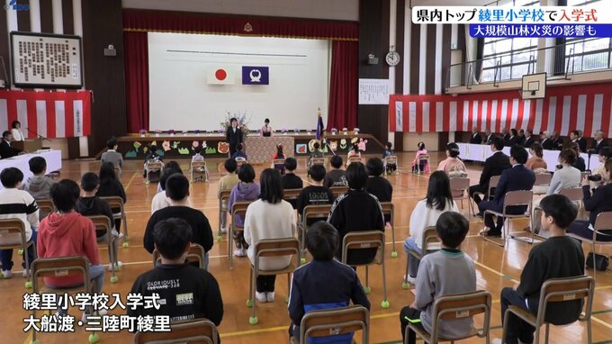 岩手県大船渡市の大規模な山林火災の発生で一時、避難指示が出された地域にある小学校で1日、県内トップを切って入学式が行われました。