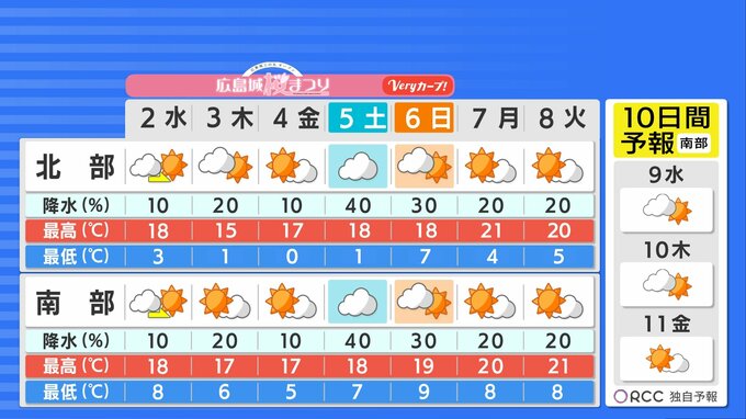 きょう4月1日(火)の広島県内は、1日高度の高い雲が広がりやすく、あまり日差しが届きませんでした。最高気温は広島市中区で15.4℃ 府中市で16.6℃など、各地で平年を下回り、日差しも少なかったので上着があっても肌寒い様な体感でしたね。