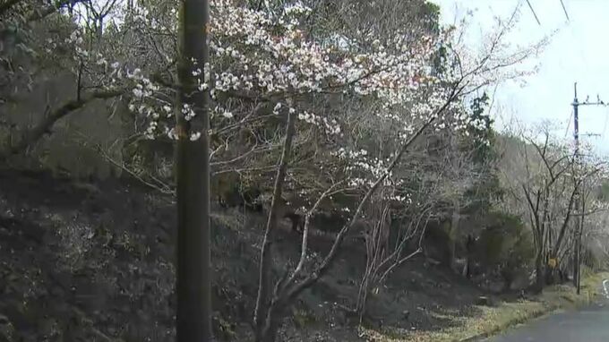 その場所を訪ねてみると…火災の影響を受けながらも、力強く花を咲かせるサクラの木がありました。