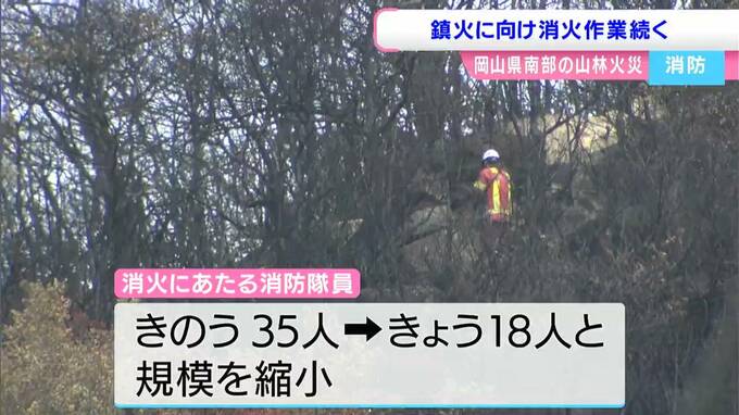 岡山市はきのう(3月31日)夕方に、災害対策本部を解散。消火に当たる隊員もきのうの35人から約半数にあたる18人と規模を縮小し、鎮火に向けた作業を続けています。