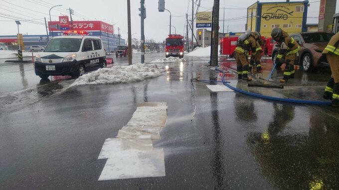 気づいた店員が消防に通報し、駆けつけた消防がガソリンを排水溝に水で流し、除去したということです。