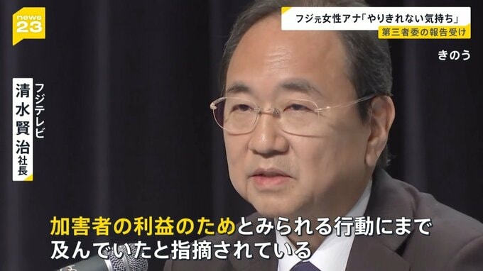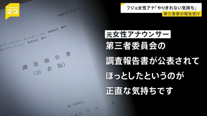 第三者委の報告受け、フジテレビ元女性アナウンサー「やりきれない気持ち」