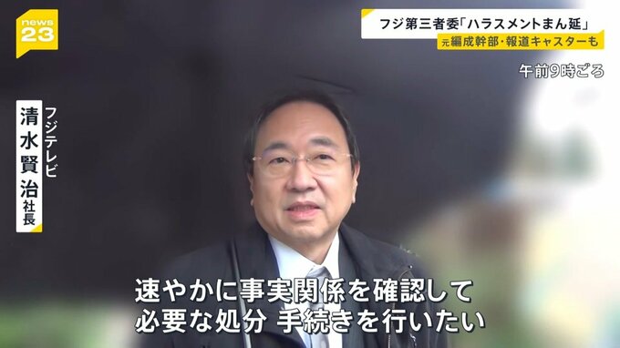 「速やかに事実関係を確認して必要な処分、手続きを行いたい」