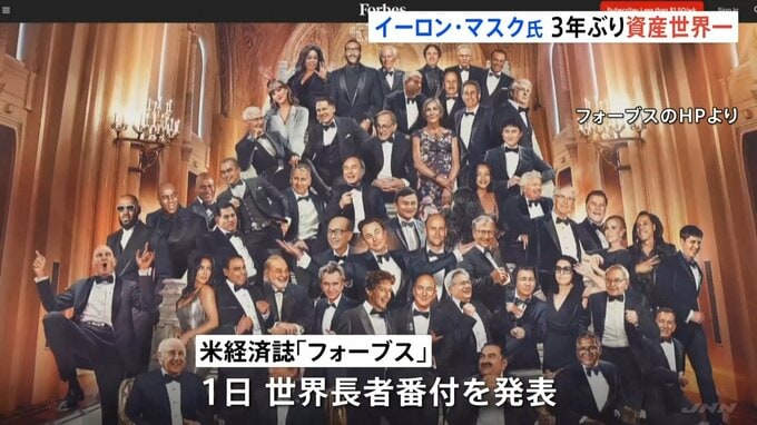 アメリカの経済誌「フォーブス」の世界長者番付で、実業家のイーロン・マスク氏が保有資産およそ51兆円で、3年ぶりに首位に返り咲きました。
