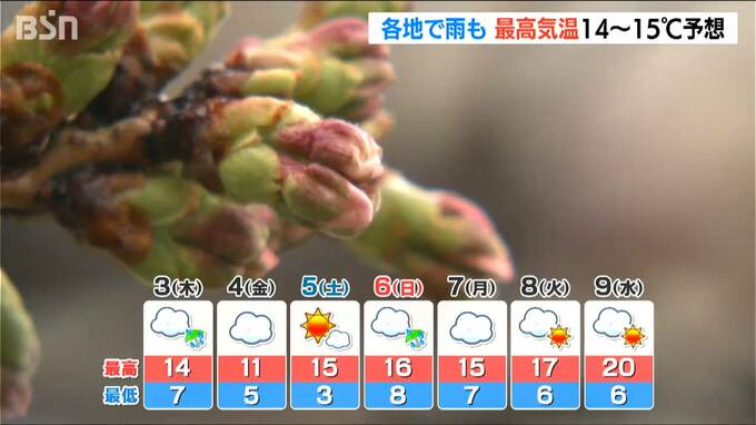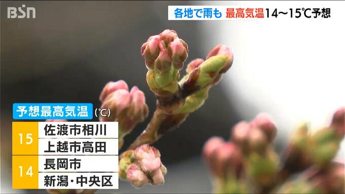 2日の日中の最高気温は、上越市高田と佐渡市相川で15℃、新潟市中央区と長岡市で14℃と平年並みの予想で、このあとも県内は14℃前後の春らしい気温の日が続く見込みとなっています。