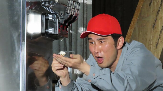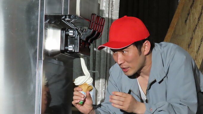先行の長谷川さんは、惜しくもソフトクリームが垂れてしまい悔しそうな表情。一方の義彦おじさんはやり方が分からず、大盛りになってしまいましたが、“こんなにいっぱいのソフトクリーム”と笑顔を見せると、たまらずソフトクリームを実食。新しくなったソフトクリームを食べて、義彦おじさんは、“いつも食べているやつより濃厚だ!美味しい”と目を輝かせました。