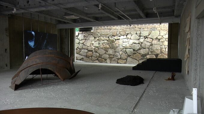 石垣を観ながらアートを鑑賞できる1階フロア。こちらの作品【画像③】はベトナムの作家ヤン・ヴォーによるものです。