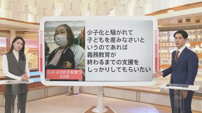 「少子化と騒がれて子どもを産みなさいというのであれば、2歳までではなくて、義務教育が終わるまでの支援をしっかりしてもらいたい」