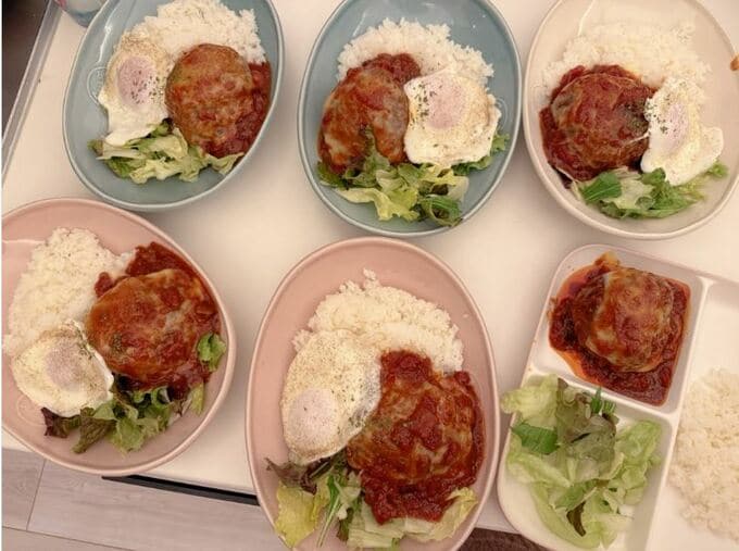 辻󠄀さんは、「大量」と題し、「昨夜から中学生が6人泊まりで来てまして 夕飯は大量にハンバーグを作りワンプレートご飯にしました!! !! !! !! !!」と写真を添えて投稿。
