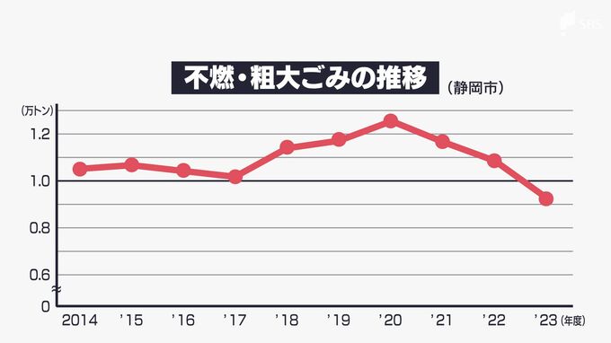 買い手にも売り手にもうれしいリユース拠点。静岡市が連携に乗り出した背景には粗大ごみを取り巻くある事情がありました。静岡市の不燃・粗大ごみの推移を見てみると、減少量が横ばいになっているのが現状です。市では、施設の開設を絶好の機会と捉え、粗大ごみの減量につなげていきたい考えです。